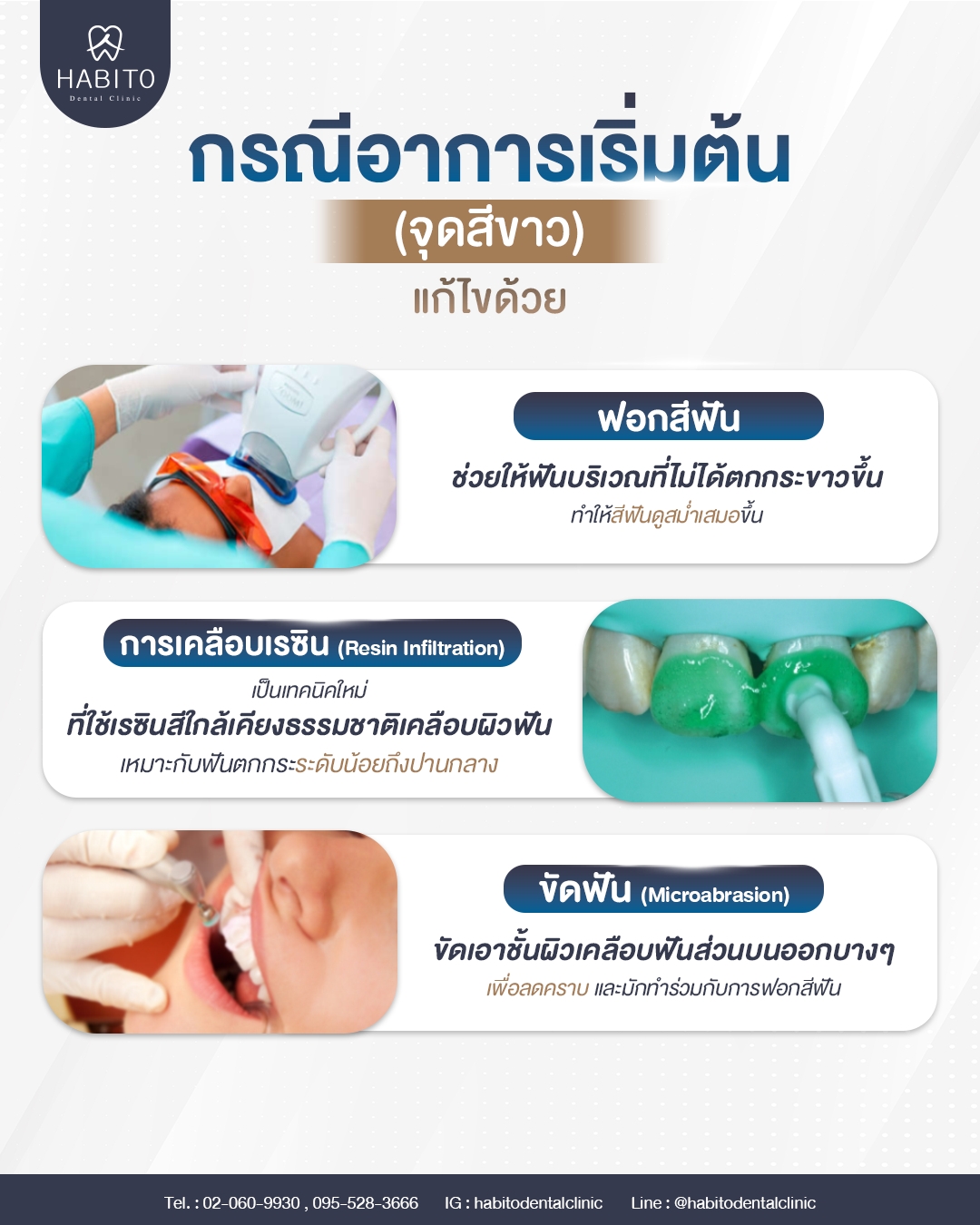 -การฟอกสีฟัน -การเคลือบเรซิน -การขัดฟัน -การทำวีเนียร์ -การทำครอบฟัน
