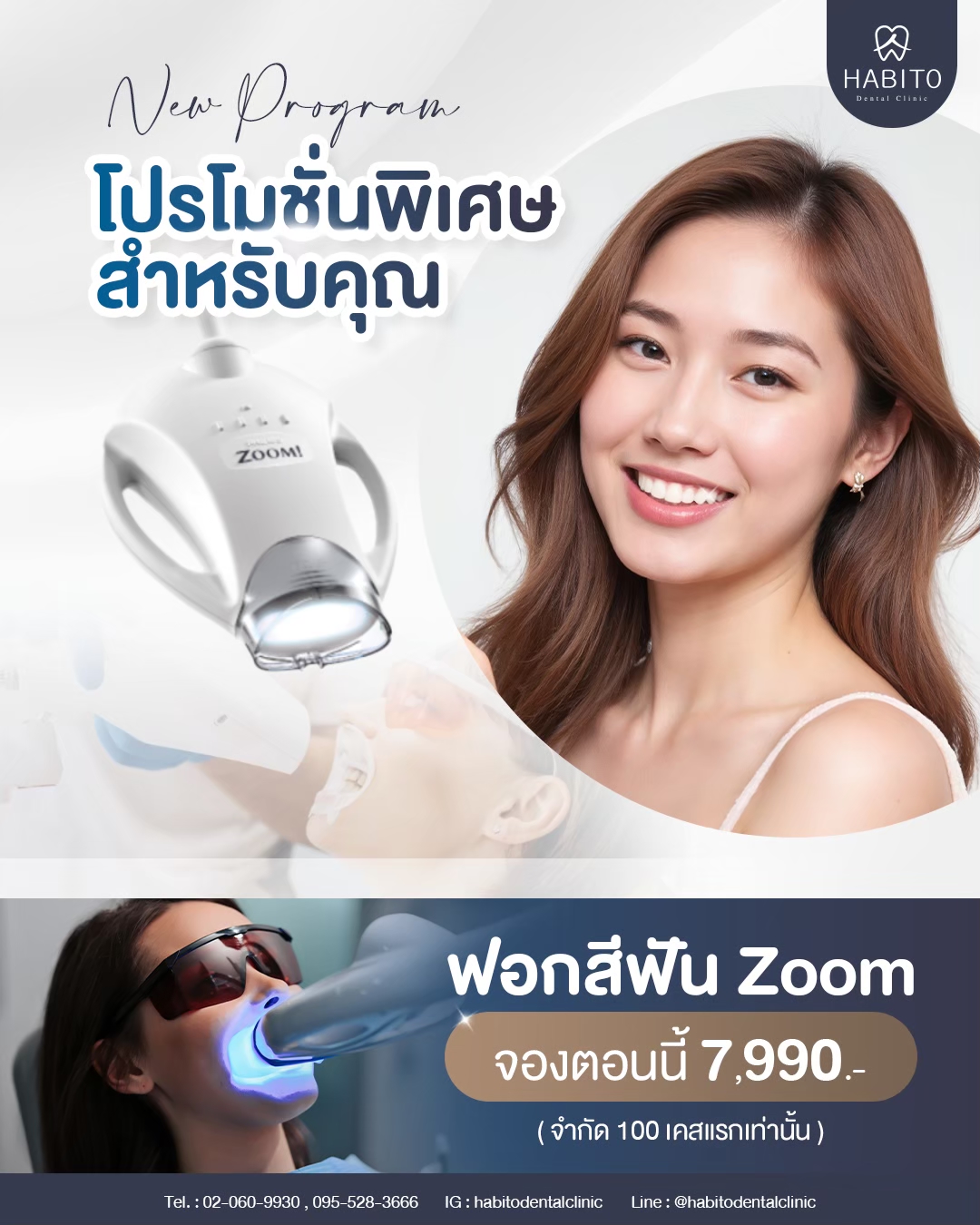 ยิ้มขาวกระจ่างใส เห็นผลชัดภายในครั้งเดียว เทคโนโลยีแสง ZOOM มาตรฐานทันตกรรม ปลอดภัย ภายใต้การดูแลของทันตแพทย์ ใช้เวลาสั้น เหมาะกับคนเร่งด่วน