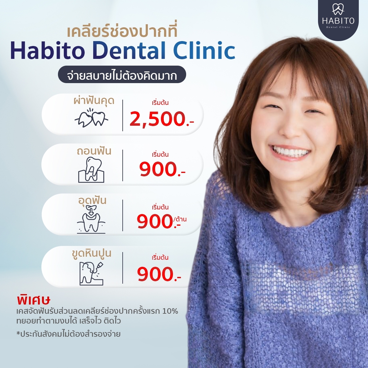 จ่ายสบายที่Habito Dental จัดโปรสิทธิ์ประกันสังคมทำฟัน แบบไม่ต้องสำรองจ่าย โดยมีเงื่อนไข ราคาเฉพาะคนที่มีหินปูนน้อยถึงปานกลางเท่านั้น!
