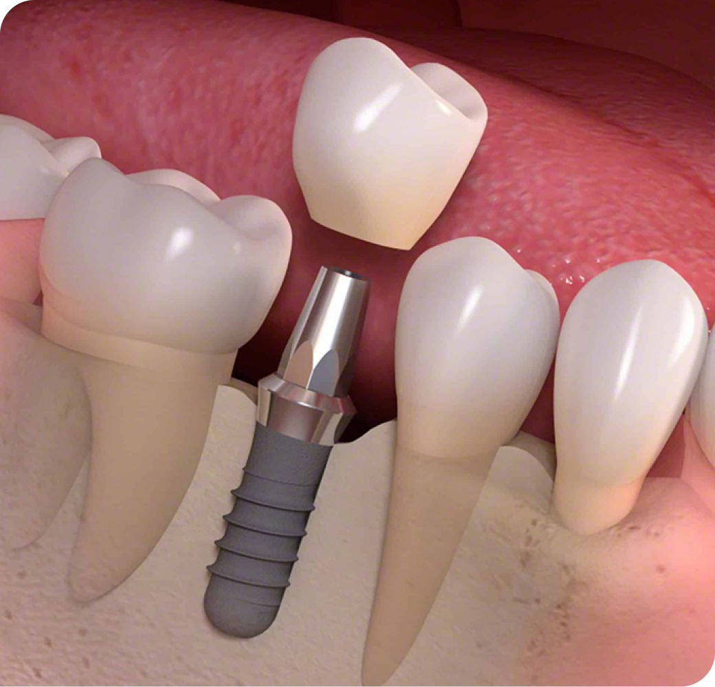 3. ครอบฟัน (Crown) เป็นส่วนที่อยู่ด้านบนของเหงือก มองเห็นได้จากภายนอก ทำจากเซรามิกมีสีและรูปร่างเหมือนฟันธรรมชาติ