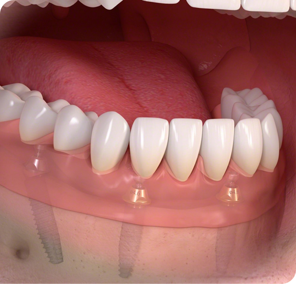 เหมาะสำหรับผู้ที่สูญเสียฟันทั้งปาก ไม่ว่าจะเป็นขากรรไกรบนหรือล่าง การทำรากฟันเทียมทั้งปากคือทางเลือกที่ดีที่สุดในการทดแทนฟันธรรมชาติที่หายไป โดยทั่วไปมักใช้รากเทียม 4-8 ตัวต่อ 1 ขากรรไกร จำนวนรากฟันเทียมที่ใช้ขึ้นอยู่กับคุณภาพของกระดูกขากรรไกร โดยในกรณีที่กระดูกขากรรไกรมีความแข็งแรงดี จะสามารถใช้จำนวนรากเทียมที่น้อยลงได้ หากกระดูกขากรรไกรไม่ค่อยแข็งแรง จำเป็นต้องเพิ่มจำนวนรากเทียมให้มากขึ้น เพื่อเพิ่มความแข็งแรงและความมั่นคงของการยึดฟัน การทำรากฟันเทียมทั้งปากช่วยฟื้นฟูการใช้งานของฟันได้ดีเท่าเดิม และช่วยชะลอการละลายของกระดูกขากรรไกร ช่วยรักษารูปลักษณ์ใบหน้าให้เป็นปกติ